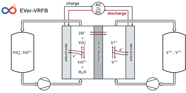 Im Forschungsprojekt EVer‑VRFB arbeiten wir daran, die Einsatzmöglichkeiten von Vanadium‑Redox‑Flow‑Batterien (VRFB) zu erweitern und zu verbessern.